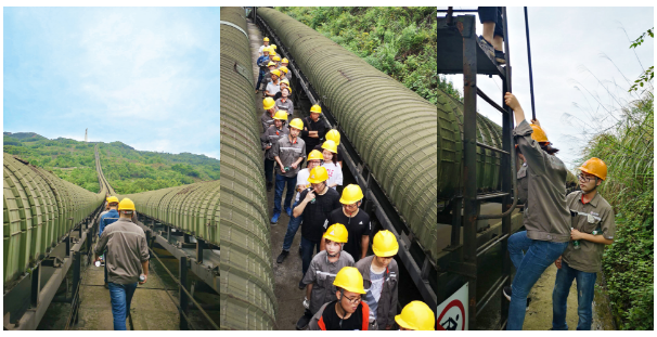 早上8点,各部门团员青年在支部书记组织下从技术中心集结出发,沿着石灰石矿山皮带输送线向上攀登,于10点半左右到达石灰石矿山950米标高破碎平台,然后乘车前往采场观摩采矿作业。