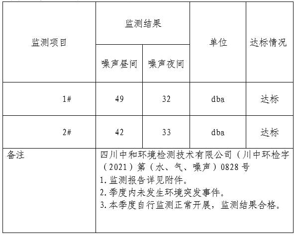 季度环境监测情况公示如下: